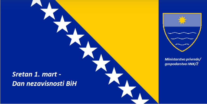 Sretan 1. mart, Dan nezavisnosti Bosne i Hercegovine želi Vam Ministarstvo privrede HNK.
